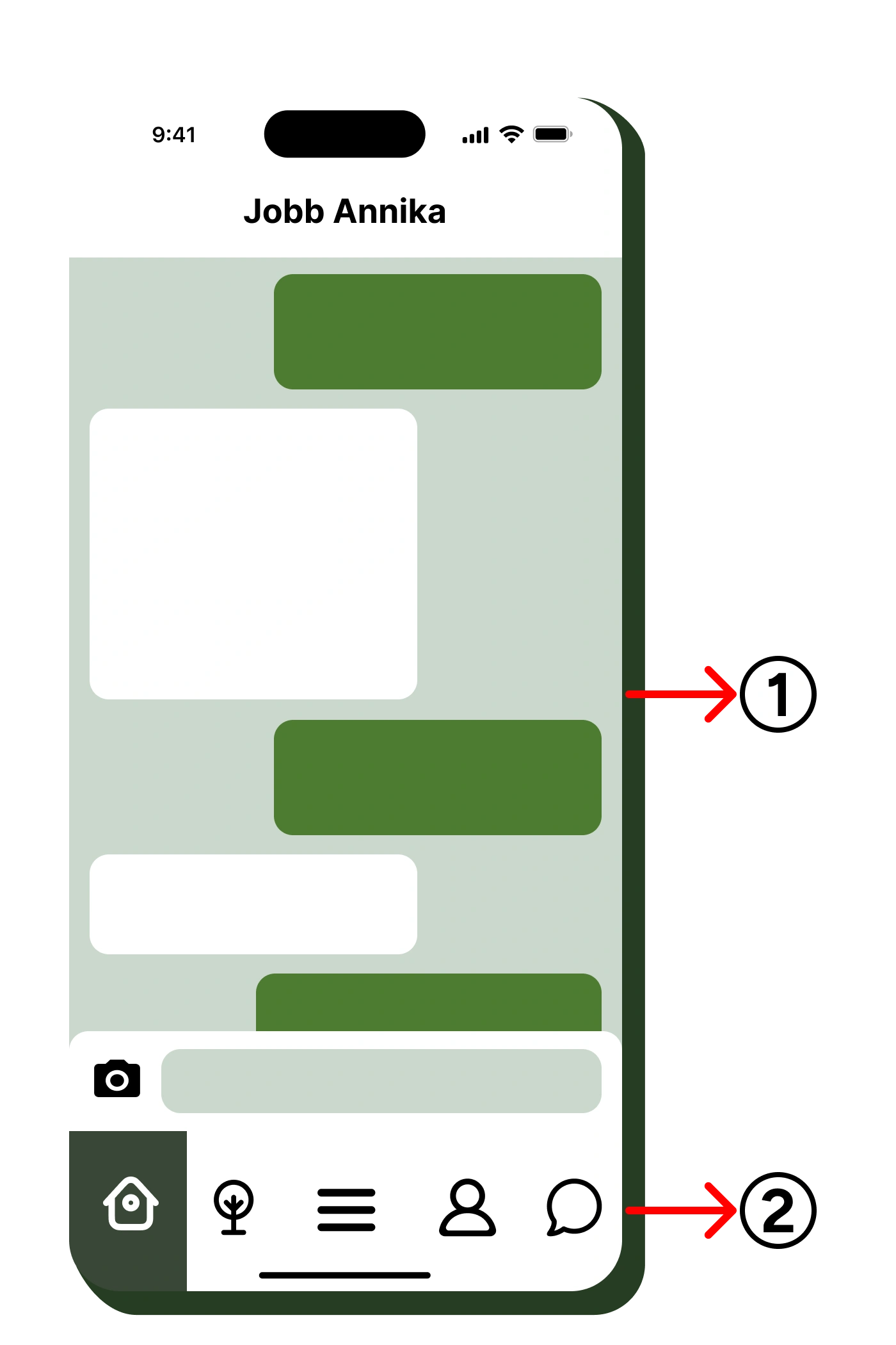 När klienten godkänt de etablerade idéerna påbörjades designen av appen gränssnitt. Designen skedde i Figma där flera iterationer skapades. Designen presenterades för klienten som gav feedback, utifrån detta utvecklades desigen. Totalt färdigställdes 5 sidor för appen. Hem, framsteg, inloggningssida, chatöversikt och chat.